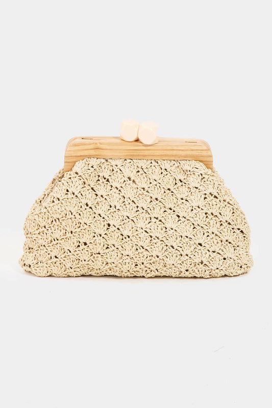 Straw Braided Wooden Frame Cluch Bag