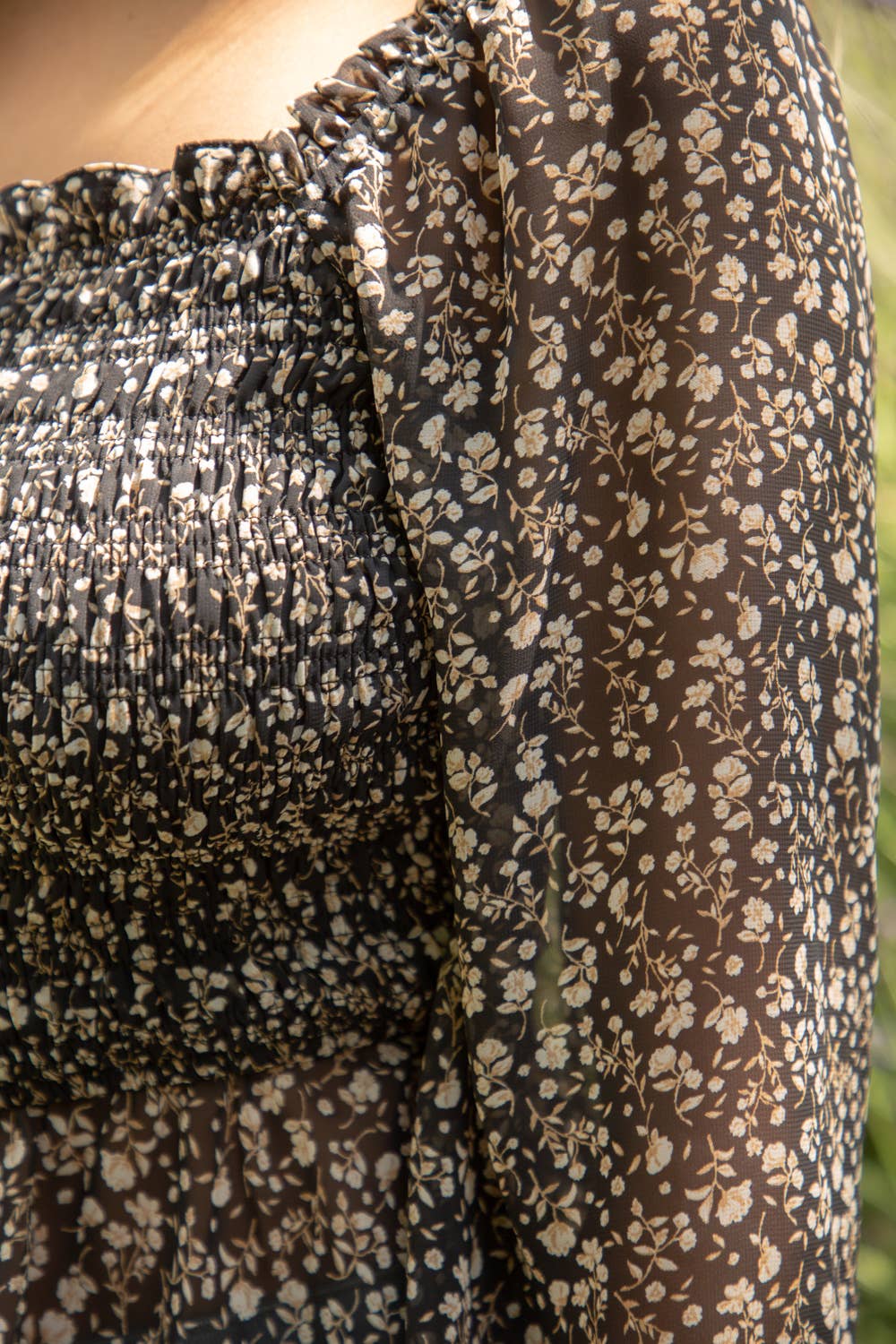 Miranda Floral Smocked Crop Top Smock below bust and ends of sleeves.