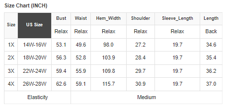 - Plus Size Info: 1X (US 14-16) 2X (US 18-20)